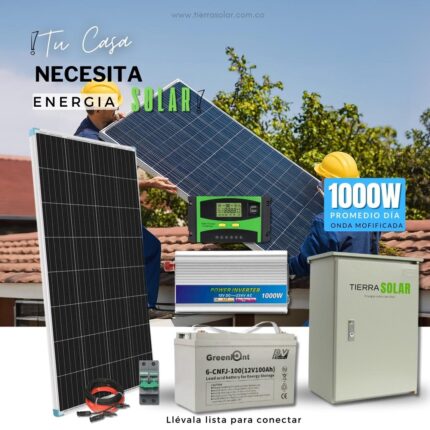 Kit Solar 1000W día Onda Modificada 110V DATOS IMPORTANTES Produce 1000w promedio día en 5 horas de radiación pico Con
