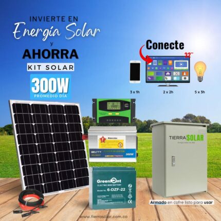 Kit Solar 300W ONDA MODIFICADA DATOS IMPORTANTES Produce 300w promedio día en 5 horas de radiación pico Con un inversor