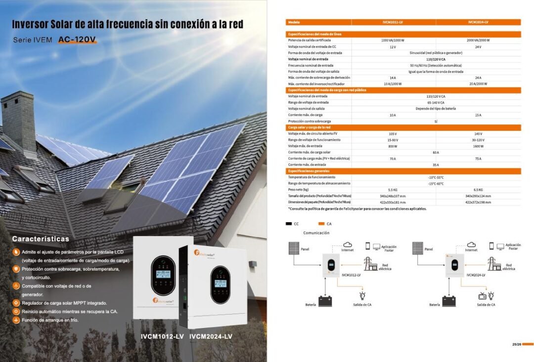 INVERSOR 2KW 24V 80A 120VOC 120V FELICITY